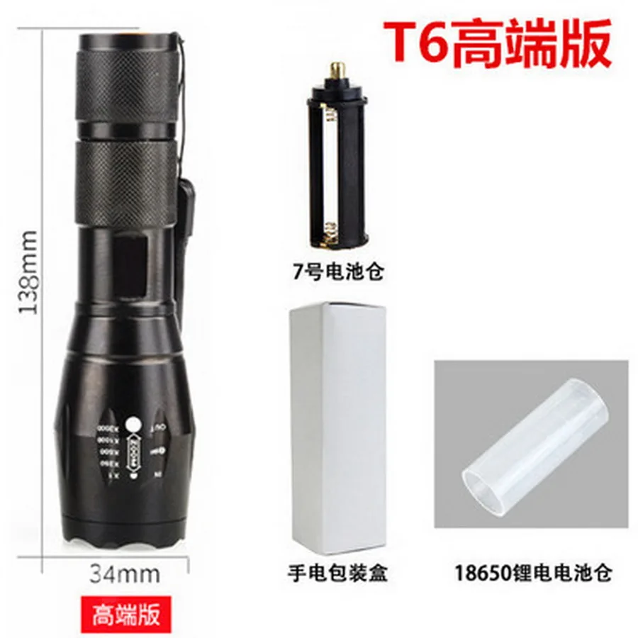 Quantity(pcs):100LED Emitter:XM-L T65.Mode: 5 modes Hi > Low > Strobe6.Lamp Life:100,000 Hours7.Color:black8.Emitted Color:White Light9.Switch:Tail Cap Clicky/Clickie10.Lumens: 8000limens11.Case material:Durable aircraft-grade aluminum4.LED Emitter:XM-L25.Mode: 5 modes Hi > Low > Strobe6.Lamp Life:100,000 Hours7.Color:black8.Emitted Color:White Light9.Switch:Tail Cap Clicky/Clickie10.Lumens: 9000lums11.Case material:Durable aircraft-grade aluminum12.Battery:1 x 18650 / 3 x AAAAfter place order:If you choose to mix colors, please tell the seller the color you need;if not,will decide as seller's considerationQuality Guarantee:One year Guarantee(not including components).Items can be returned for repair within 1 year from the date you receive your merchandise.Buyer is responsible for return shipping with proper packaging.Buyer is responsible for return shipping cost and insurance.Please contact us via email before return.if meet pacakge destroyed,(once you recieve the goods. if find the goods broken ,please contact with express company, First Time. and get ''the goods broken proof ducu#ments'' and '' issue number',then can get compensation from express company ,meanwhile,you send back the broken item back by post, i will change new or repair it,i will pay for the return shipping fee )any problem,please send back by post,don't estimate the value as compensationFeedback:Once you have received your item, please leave feedback for us.Negative feedback does not resolve any underlying issues. If you have a problem, Please Contact us via email first and give us the opportunity to reasonably rectify in a reasonable amount of time. We will try to respond ASAP, and we are always willing to work things out.Contact us:For some uncontrollable factors, the item may be damaged during shipping. If you receive a broken item, Please Contact us first, we will investigate and replace, if you have any other questions please email us.We will respond within 1 business day or less. Please include item number or order number in all communications.