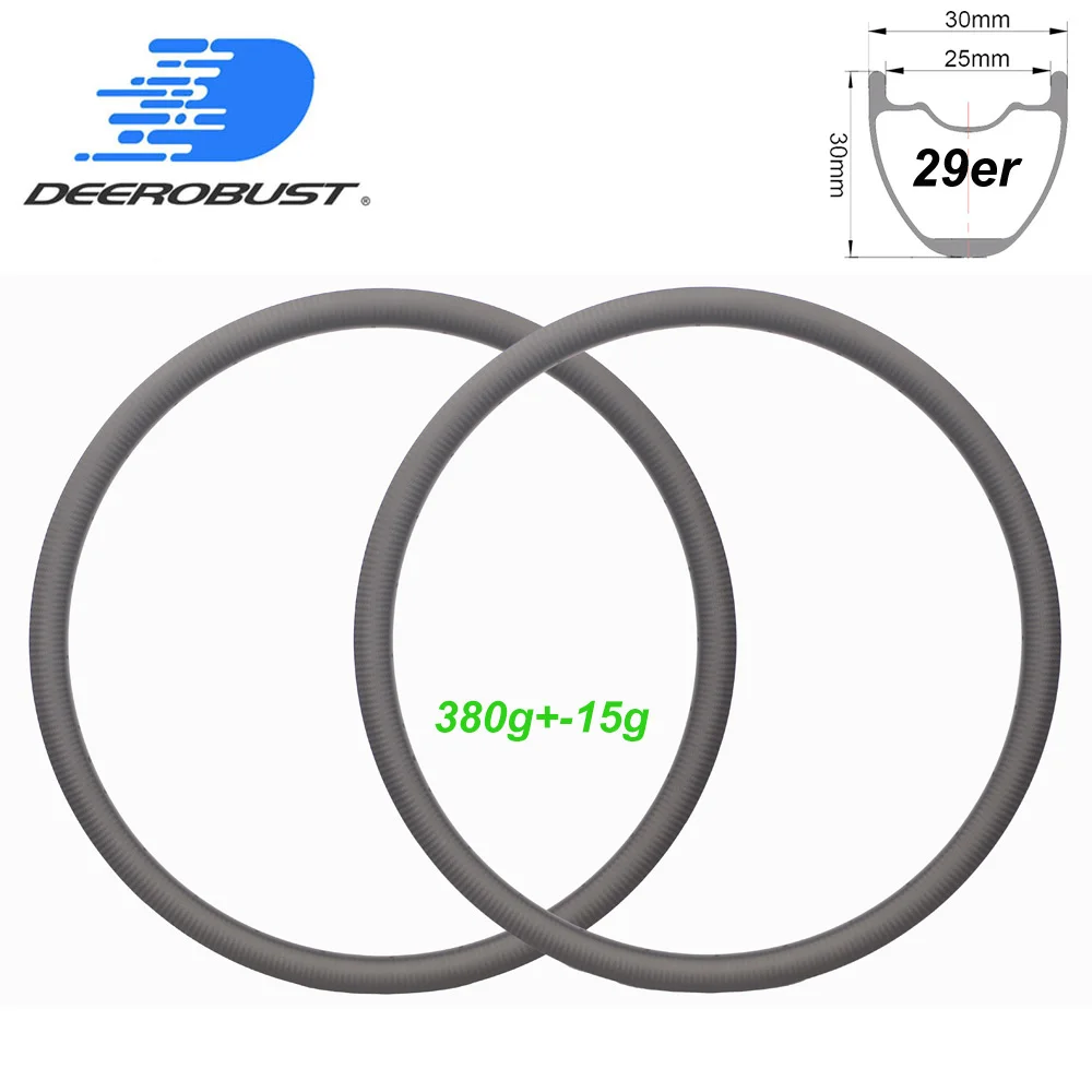 Deerobust MTB Rims 30X30 Carbon Fiber Mountain Bike Rims 29er Hookless Tubeless Clincher for XC Racing Cross Country SPECIFICATIONS: RimDepth:30mm RimWidth:30mm ApplicableBicycle: MTB Bikes Using occasion Cross country/XC Racing Rims: Full Carbon FiberToray®T700+T800 RimType: HooklessClincher Tubeless Compatible YES RimWeight: 380g+-15g Finishing: Glossy/matte (Default: Matte) Rim Weave 3K/UD/ 3K Twill (default3k twill) 12K/ 12K Twill ( upgrading cost: $10) ERD: 580mm Recommended Max Rider Weigth 120kg/265lbs Recommended Max Tire Pressure 60psi/4.1bar Max Spoke Tesion 160kgf Warranty 2 years RIM PROFILE: DETAILS: Rim 30mm Deep 30mm WideCarbon MTB Rim. Maximum Drapability and Balance of Properties. We strongly believe that the quality, consistency and quality of our products is the most cost-effective in the industry. In order to ensure that DEEROBUST rims not only meet international safety requirements but also comply with additional and higher quality standards, we use SGS and EN 14781 standards when manufacturing the rims. What is the difference between UD, 3K and 12K carbon finish? What is the difference of Matte or Glossy finish? UD, 3K and 12K specify the carbon weave pattern. 3K means there are 3,000 filaments per "tow", 12K means there are 12,000 and UD means unidirectional (no pattern). There is usually an option to choose between matte or glossy. Matte results in more stealthy look, glossy will make the pattern pop. Can I have rims without nipple holes in the rim tire bed? Yes, you can decide whether to have nipple holes in the rim tire bed or not. Can I have rims with internal nipple holes? Yes, you can decide either internal nipple holes or external nipple holes. Wheel choice – deciding what rim depth is best This is an added element of modern-day cycling strategy. DEEROBUST has so many different rims at different heights, from 20mm to 88mm. We will offer some guideline on which DEEROBUST wheel matches which type of terrain: 20mm to 40mm depth – “Uphill, long climbs.” 45mm to 50mm depth – “Up and down all day.” 60mm depth – “Some up and down, flat.” 60mm depth front, 88mm depth rear – “Lead outs.” 88mm depth, Disc Wheel, Tri Spokes – Time trials. Symmetrical vs asymmetrical. Asymmetrical rims build up into stiffer, stronger and more reliable wheels by improving the bracing angles of a dished wheel and equalizing the spoke tensions between the drive and non-drive side spokes. On a mountain bike/ Cyclocross/ Gravel bike wheelset with disc brakes, both the front and rear wheels have significant dish. With symmetric rims, the rim is centered (or dished) by decreasing spoke tension on one side relative to the other so that the rim is pulled into center. So using asymmetric rims front and rear will be an optimal option. On a Road bike wheelset, the rear wheel has significant dish. With traditional rims, the rim is centered (or dished) by decreasing spoke tension on one side relative to the other so that the rim is pulled into center. So using front symmetric rear asymmetric will be an optimal option. Do you offer a choice of decal colors? Absolutely! You have your choice of white, black, bronze, blue, green, yellow, orange, pink, purple, red or turquoise. Can I choose the custom decal? Yes, feel free to send us the design file of your custom decal. We will offer corresponding quote based on the color amount and pattern. How do I choose the brake pads? We recommend the brake pads which are made of cork wood. DEEROBUST brake pads have been designed specifically for DEEROBUST’s carbon rims to offer the best balance of power and modulation in both wet and dry weather conditions. Or you can choose Swiss Stop brake pads, Reynolds brake pads, which also have excellent modulation performance. DEEROBUST lightweight racing carbon rims,wheel and spoke wheeare guaranteedfor24MONTHS. Any quality issues occur within 24 months, we are obliged to repair/replace neccessary components for free. What’s more, if there is unlucky crash/accidents with your wheels with 30 months, we are willing to offer you new wheels at minimum cost. This warranty is non-transferable and valid to the original purchaser of the product only. The following improper use will void your warranty 1. Crashes and accidents 2. Misuse (off-road riding, jumping, trick riding, Cyclocross, etc) 3. Modification of wheels or Improper assembly 4. Tire pressure exceeding 140psi 5. Normal wear and tear 6. Improper follow-up maintenance or maintenance by an unauthorized technician. 7. Installation of parts or accessories not originally intended for, or not compatible with the wheelset as sold 8. Damage or deterioration on the surface finish or appearance which has no effect on the function 9. Damages caused by natural disaster This warranty does not cover: 1. Normal wear items (bearings, skewers, spokes etc. 2. Surface finishes and cosmetic treatments (anodizing, decals, etc) 3. All other bicycle components 4. Consequential or incidental damages (where applicable) Warning: If you do not follow these guidelines,the warranty will be void. 1.Use brake pads for carbon rims only. Change brake pads when wear is indicated. 2.Use high pressure rim tape for clincher wheels. 3.Clean rim surface and brake pads before you use your wheels. 4.Exceed the maximum tire inflation pressure recommended. Road: 130psi; MTB: 65psi Whenwill my rims/wheelsetsbe shippedafter Imake the payment? If the rims or wheelsets are in stock, we will ship them out within 3 business days. If there is no stock, it will take about 7~21 days for rims manufacturing. What shipping method do you use? Normally, we ship the products by EMS directly. It takes about 5~10 business days for your parcel to arrive. If you wanna use a faster shipping method, like DHL, FedEx, UPS, TNT etc, please contact us, you may need to pay additional shipping cost. Delivery time depends on destination and other factors. If you have not received your shipment within 20 days
